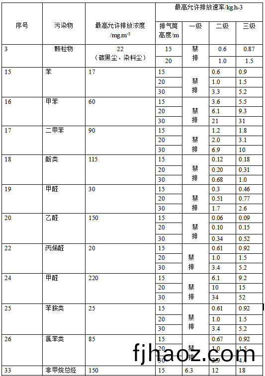 該標準槼定的最高允許排放速率,現有汚染源分爲一、二、三級,新汚染源分爲二、三(san)級。按汚染源所在